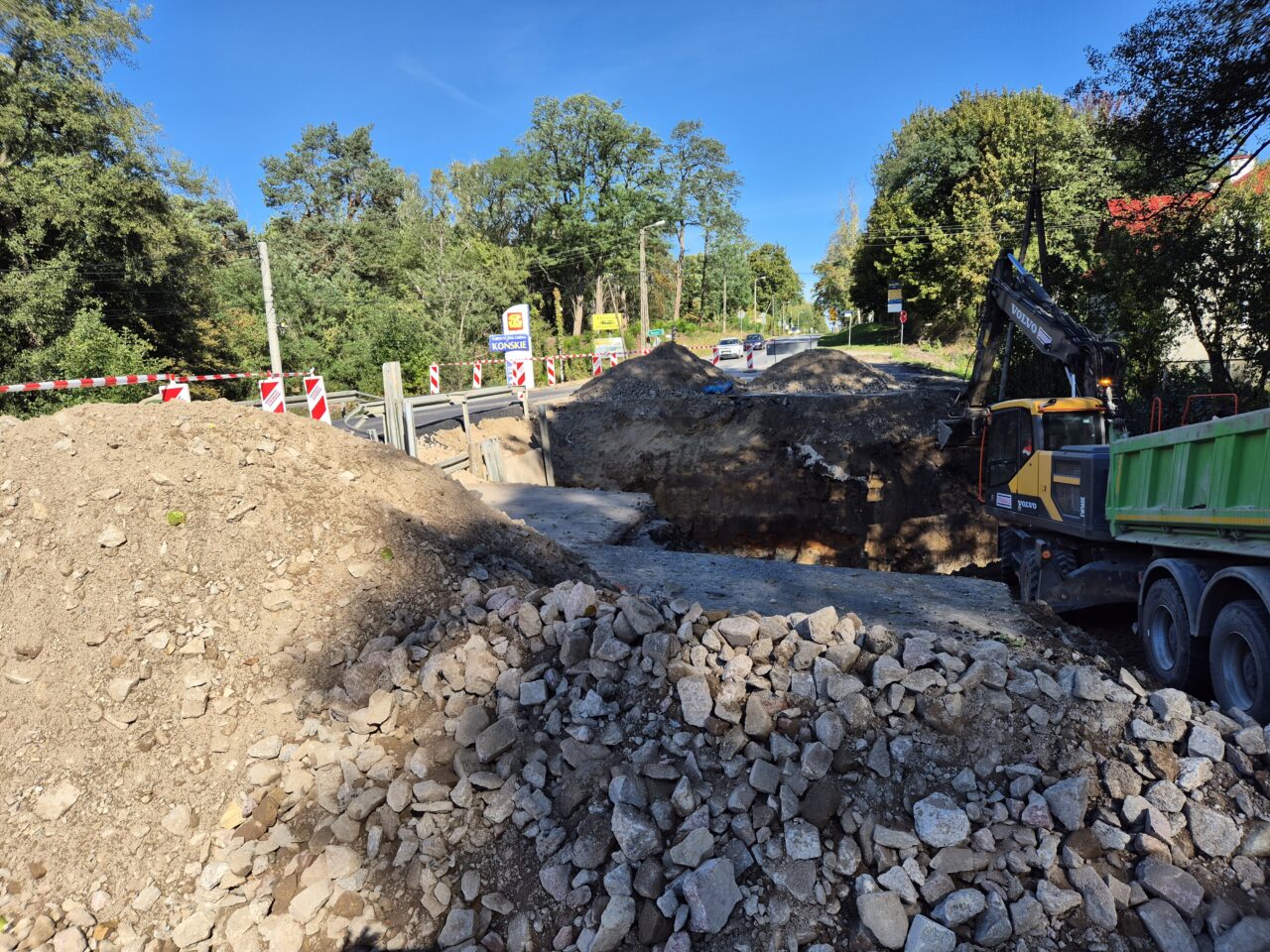 Postęp prac w październiku 2025. Na dużej części remontowanego odcinka wprowadzono ruch wahadłowy